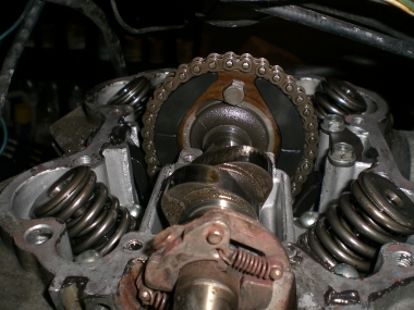 | Da war jemand nicht gerade sparsam mit der Dichtmasse | kleiner Einblick in die Steuerkettenführung |