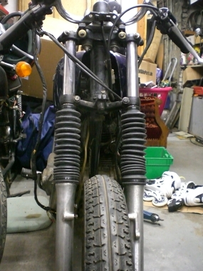 | Faltenbälge zum Schutz der Gabelholme | Noch ziemliches Kabelgewirr |