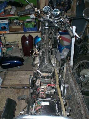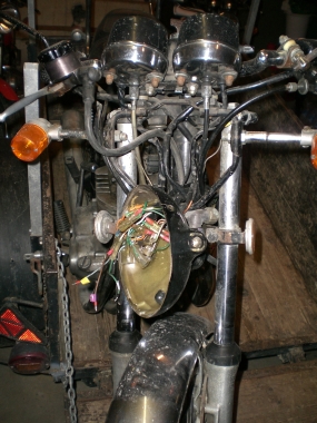 Mittlerweile (März 2010) steht die CB bei uns im Keller. Der Kabelbaum bereitet mir einige Probleme und ich werde versuchen, der Sache Herr zu werden. Allerdings bedarf es dafür einiges an Zeit...
