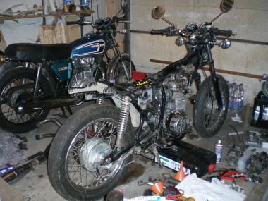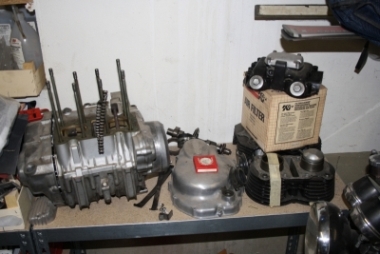 Auch hier, wie bei der CB250 bin ich ins Stocken geraten. Das "rolling Chassis" (sagt man glaub ich so) steht in der Garage. Der Motor allerdings liegt auseinandergenommen auf meiner bescheidenen Werkbank und wartet auf seine Montage.