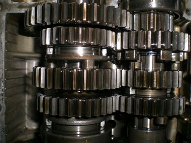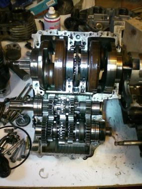 | obere Kurbelgehäusehälfte | Das Getriebe in Nahaufnahme |
