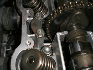 | Da war jemand nicht gerade sparsam mit der Dichtmasse | kleiner Einblick in die Steuerkettenführung |
