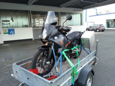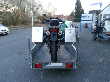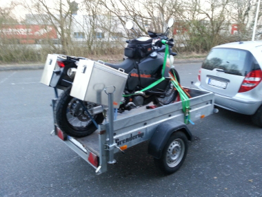 | Abholung mittels Anhänger | die KTM ist irgendwie länger als die FZR... |