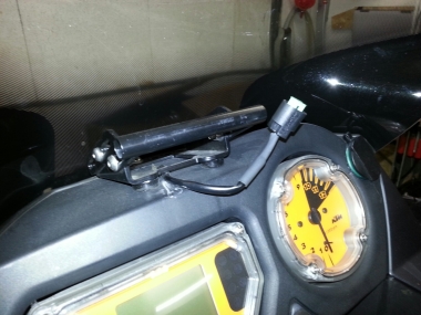 | Die Halterung für´s Navi hinterm Windschild | Vom Stecker her vielleicht Garmin??? |