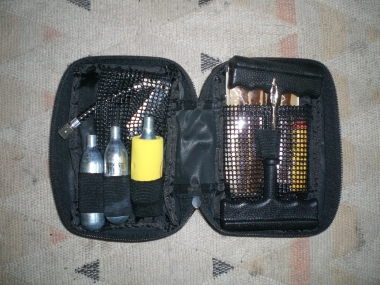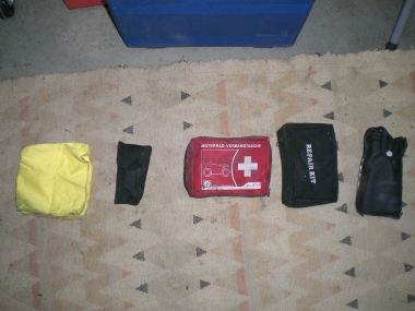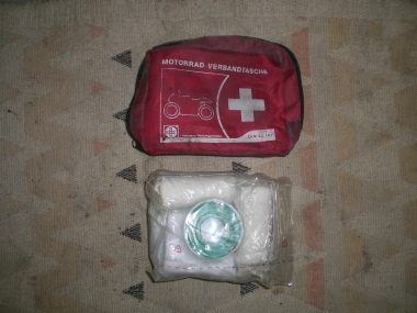 | Verbandstasche (Gott sei dank noch nie gebraucht, aber man weiß ja nie...) | Reifenreparatur-Set (hat sich durch eine Reifenpanne eines Kumpels, als hilfreich herausgestellt) |