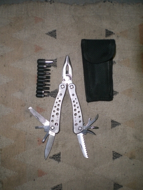 | Ein kleines Tuch zum Trocknen des Sitzes am morgen (auch vielleicht nicht schlecht für Pannen durch die hellere Farbe?) | Ein billiges Multitool für alle Fälle |
