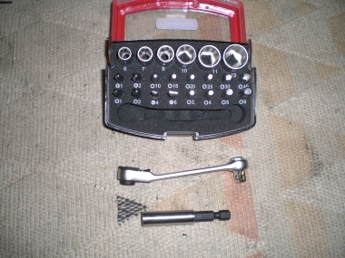 | Kleiner "Ratschenkasten", kein Muss, aber auch recht hilfreich | So sieht dann mein "Kofferraum" aus |