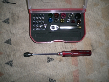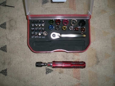 etwas größerer "Ratschenkasten" mit zusätzlich ausziehbarem Schraubendreher |