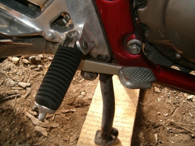 | Mein Fußbremshebel (vom Vorbesitzer ein wenig Kaltverformt) | Die Fußrastenplatte von hinten |