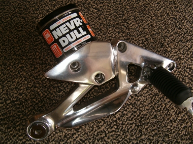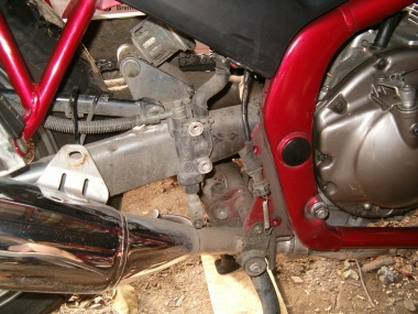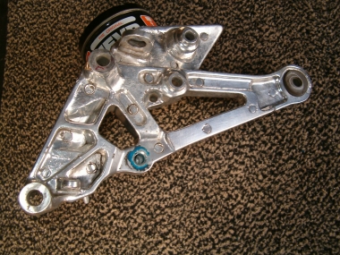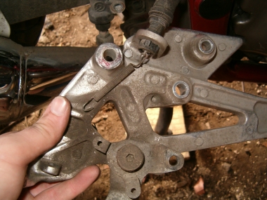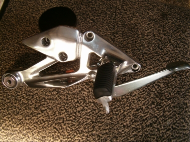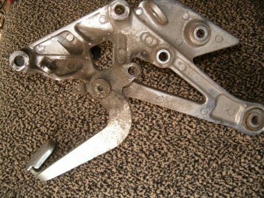 | ausgebaute Fußrastenanlage mit altem Bremshebel | Ein wenig "nackt" so ohne Raste |