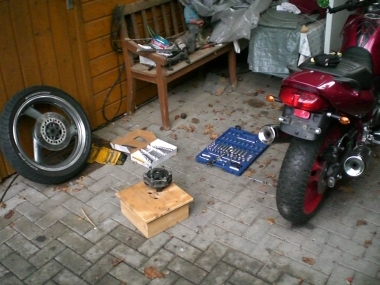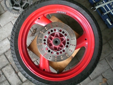| FZR- Felge eingebaut, XJ- Felge daneben | Diversion mit FZR- Felge von der Seite |