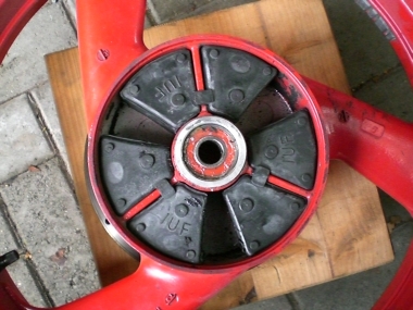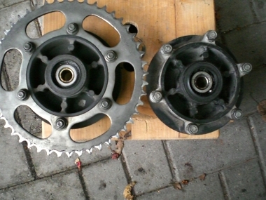 | Hier mal der direkte Vergleich der beiden Felgen | Die FZR Felge (mitsamt Bremsscheibe und Kettenblattträger) |
